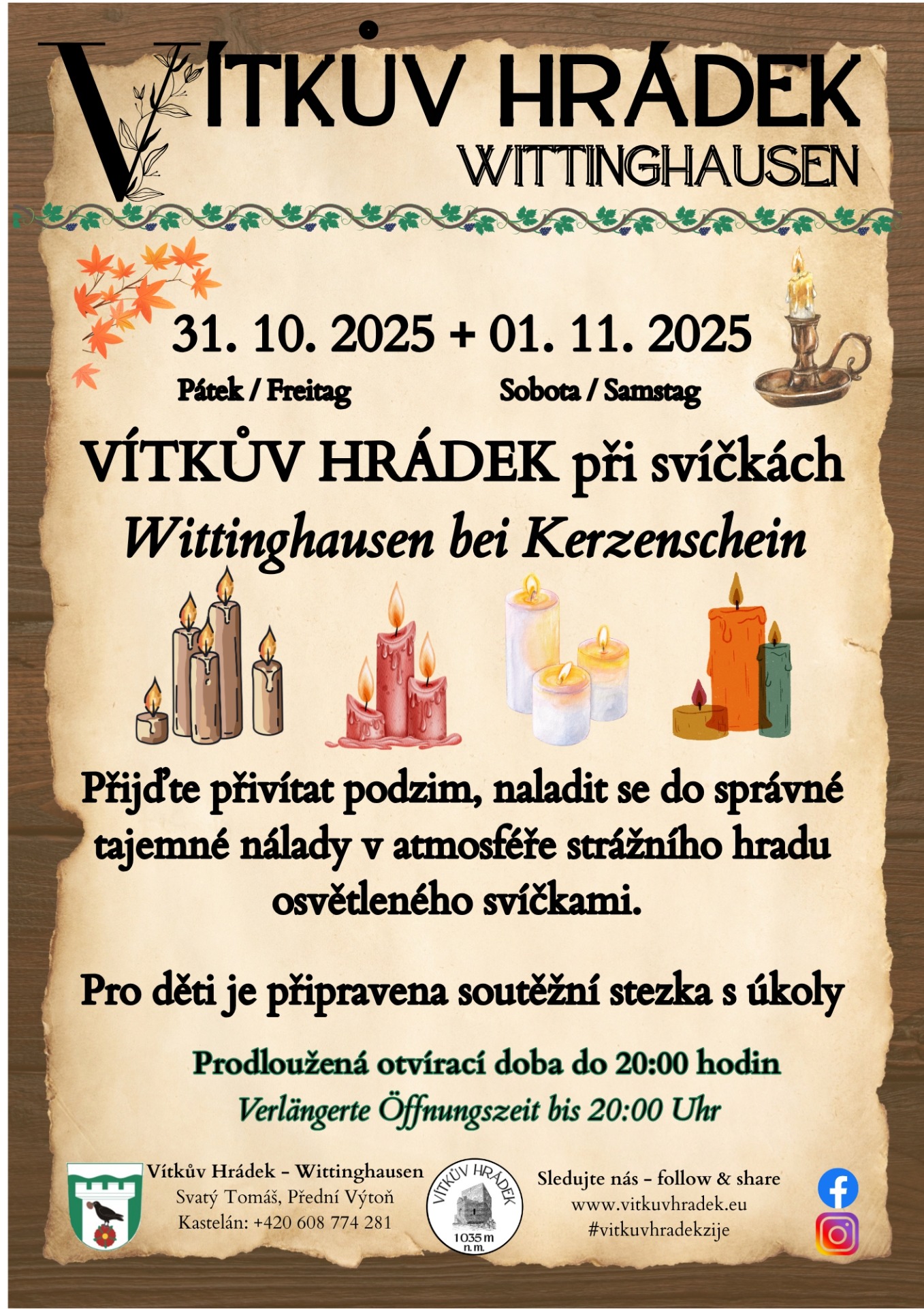 Srdečně vítáme na oficiálních stránkách Vítkova Hrádku, romantické zříceniny strážního hradu v překrásné šumavské přírodě nad Lipnem.