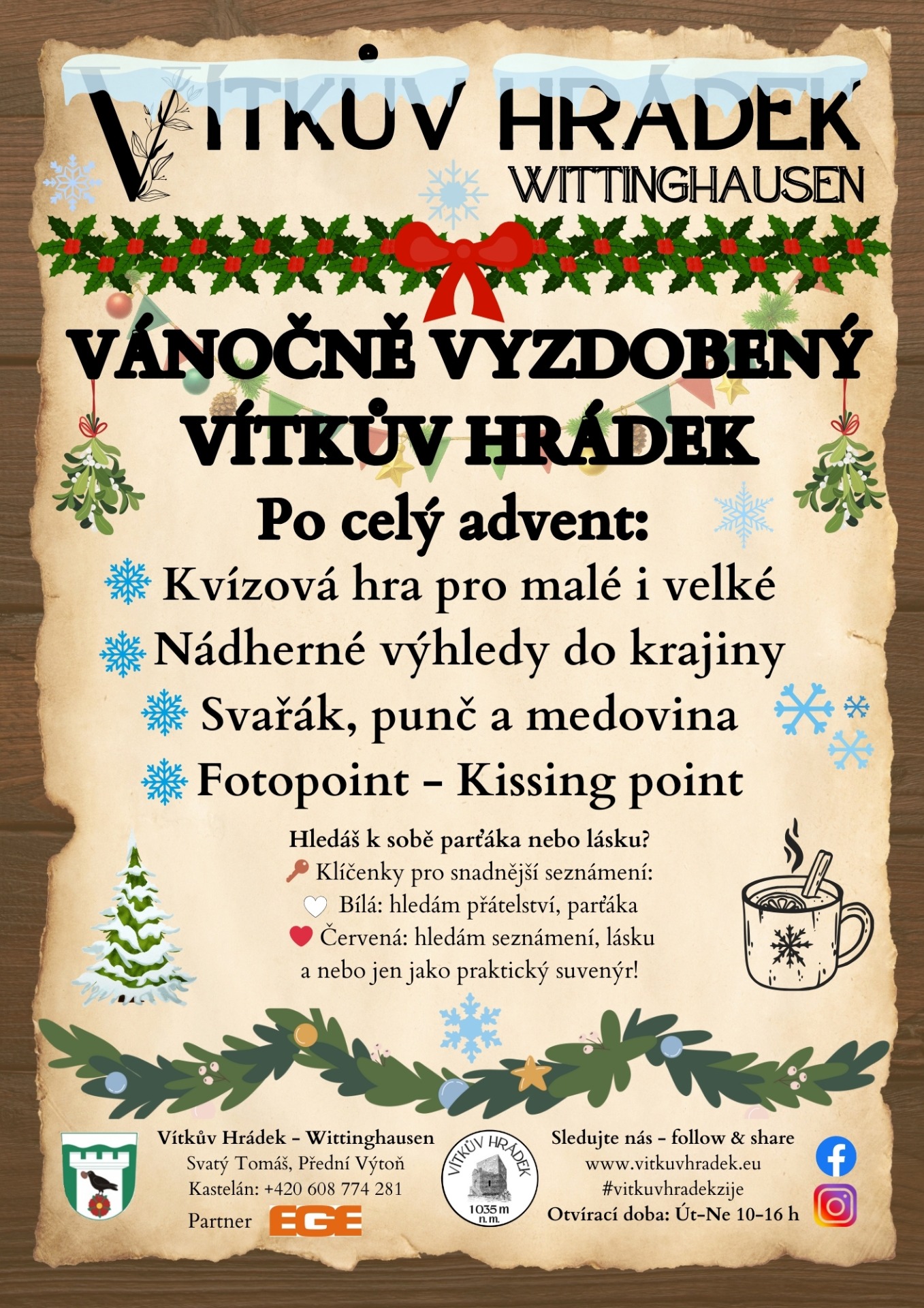 Srdečně vítáme na oficiálních stránkách Vítkova Hrádku, romantické zříceniny strážního hradu v překrásné šumavské přírodě nad Lipnem.